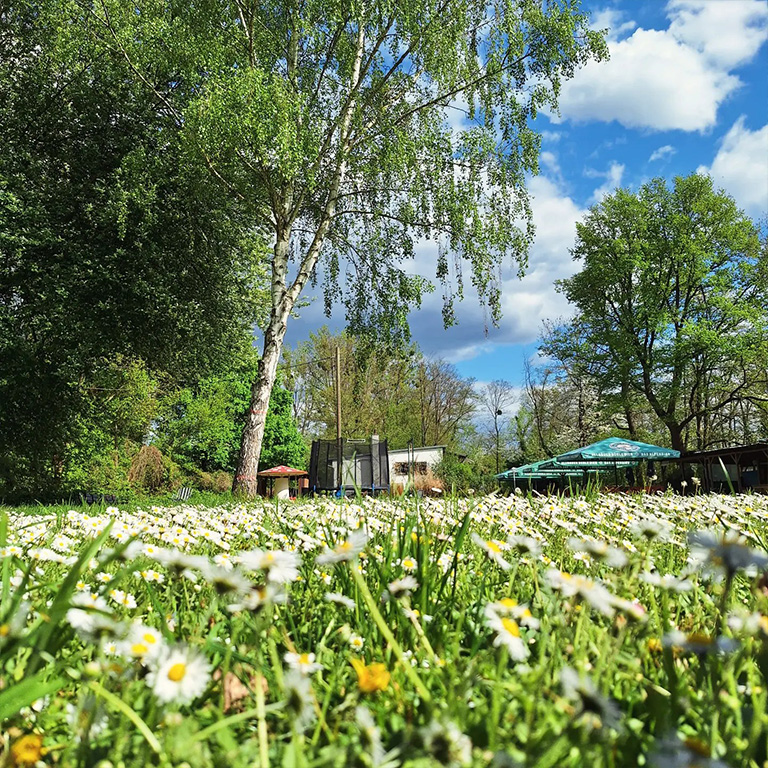 Für die kleinen Gäste gibt es eine Spielwiese, Planschbecken, Sandkasten und Schaukeln. Gerne könnt ihr noch