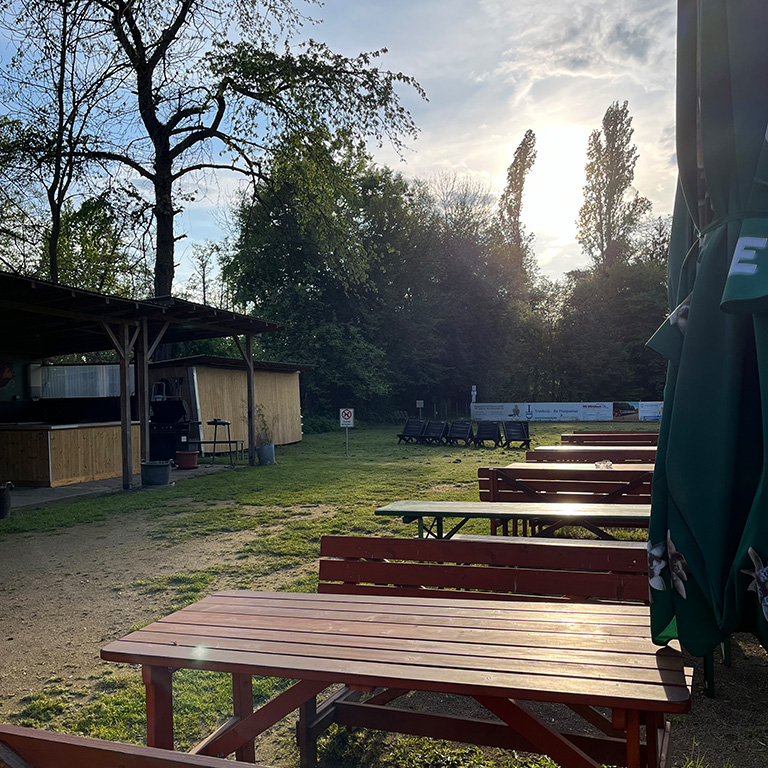Outdoorspiele (Federball, Fußball etc.) mitbringen.